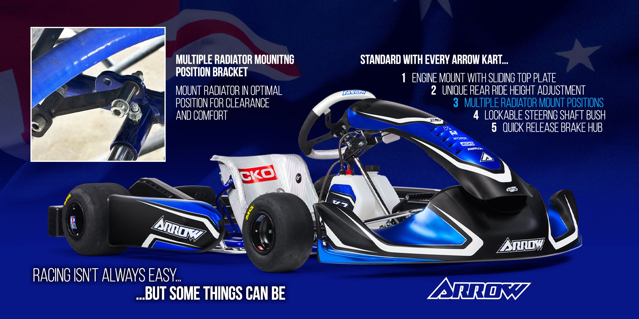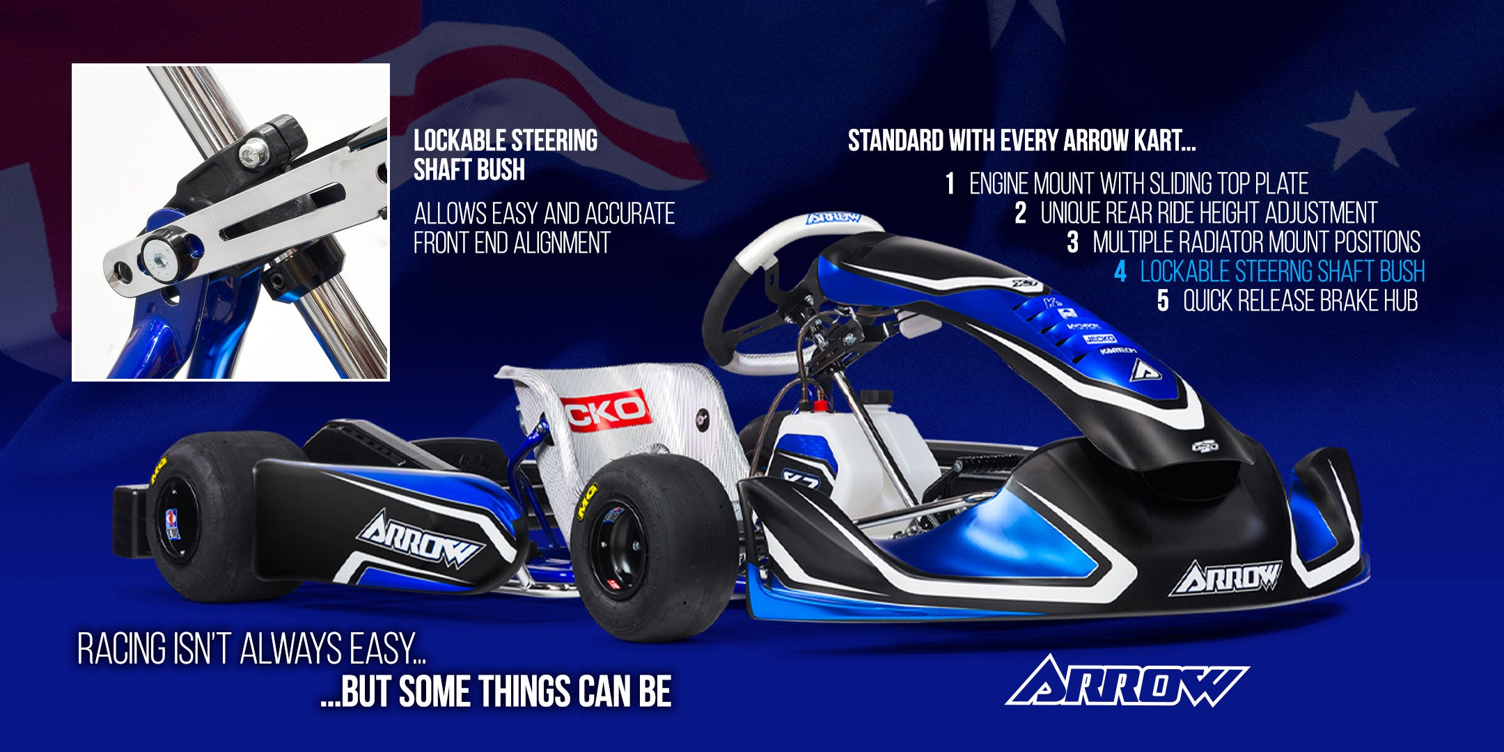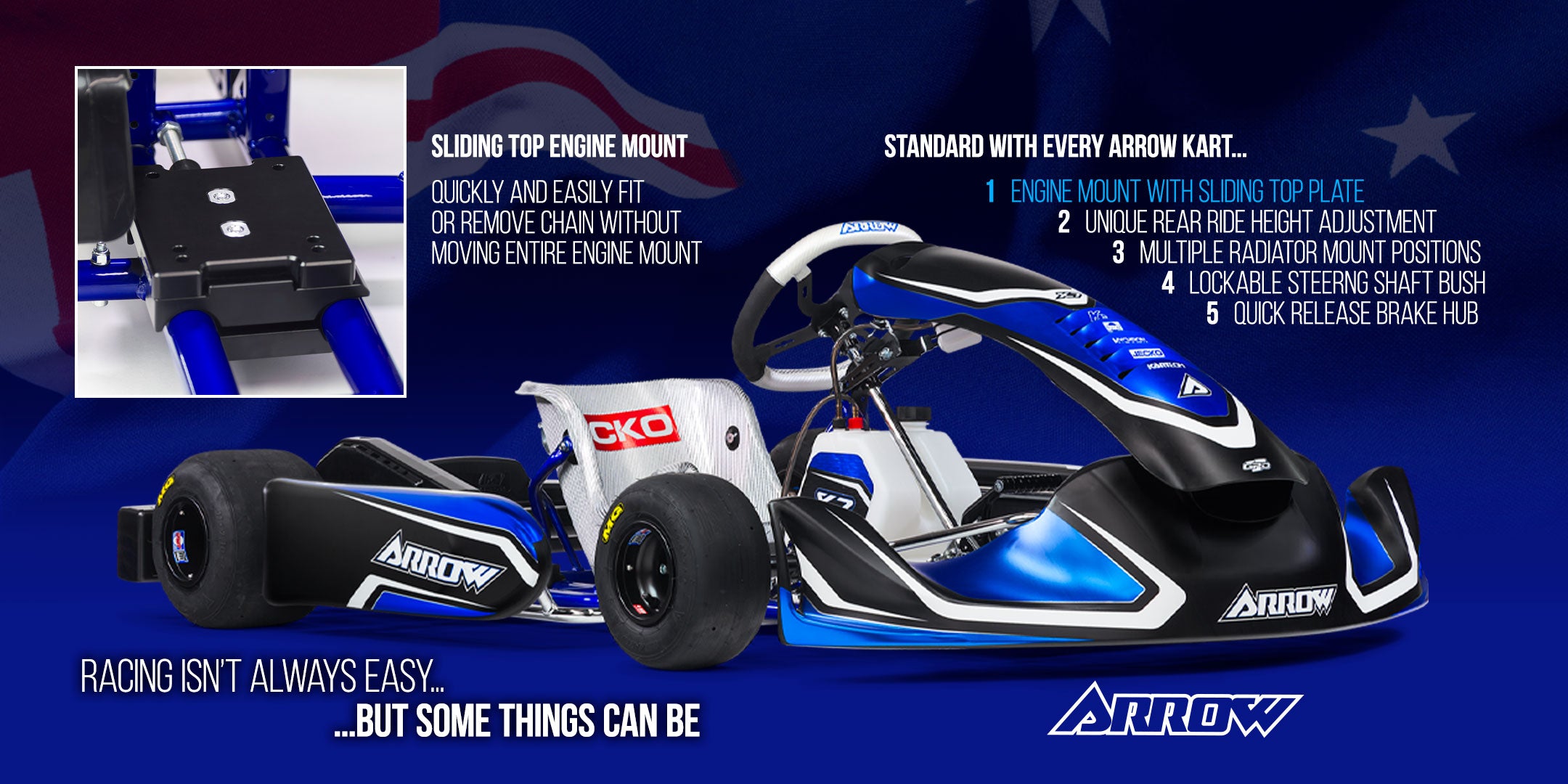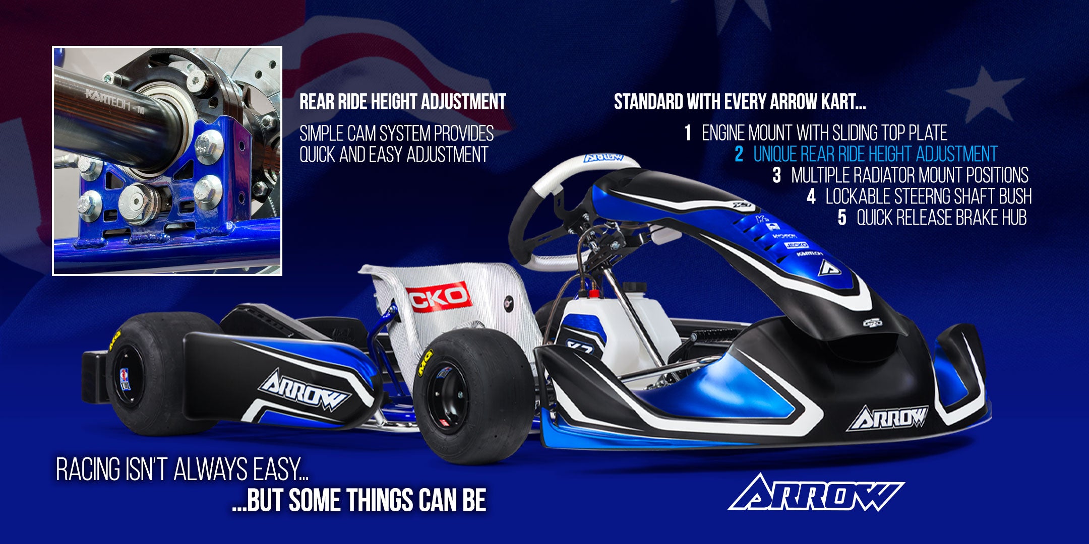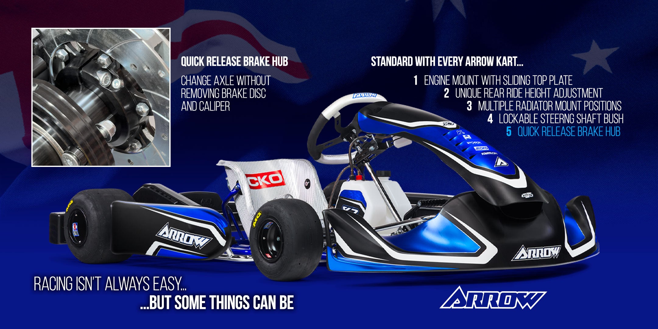 Every Arrow kart comes standard with unique and innovative features to make your karting easier. Arrow karts are designed and built in Australia to deliver performance and durability on Australian tracks.